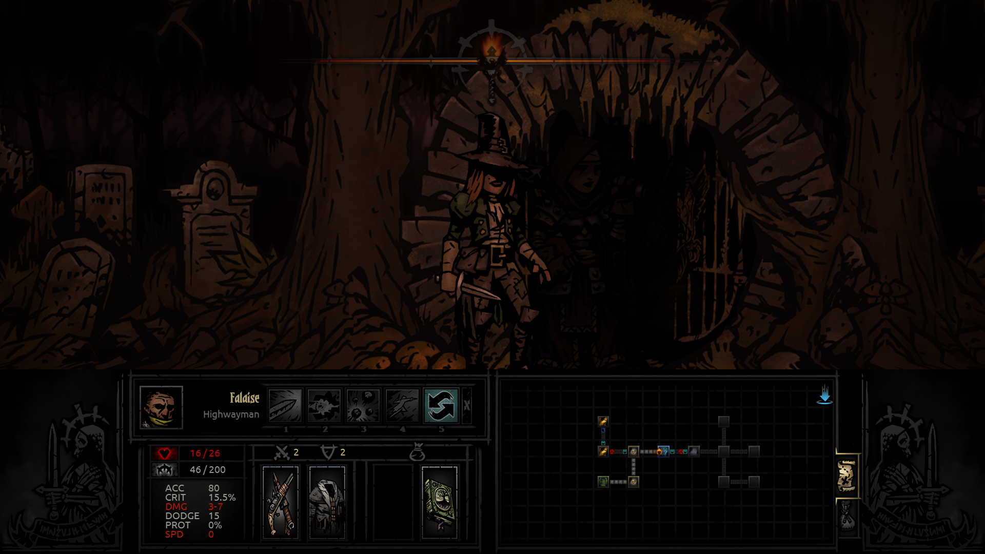 The majority of your time spent in Darkest Dungeon is in the dungeons themselves. While only 3 are available to play in the game's unfinished state, the maps, objectives, and loot are randomized to ensure that the experience remains relatively fresh. The overall nature of Darkest Dungeon's experience can be rather repetitive, so the unforgiving difficulty forces you to focus more on the wisdom of your decisions and less on how each path and room is the same as the last.