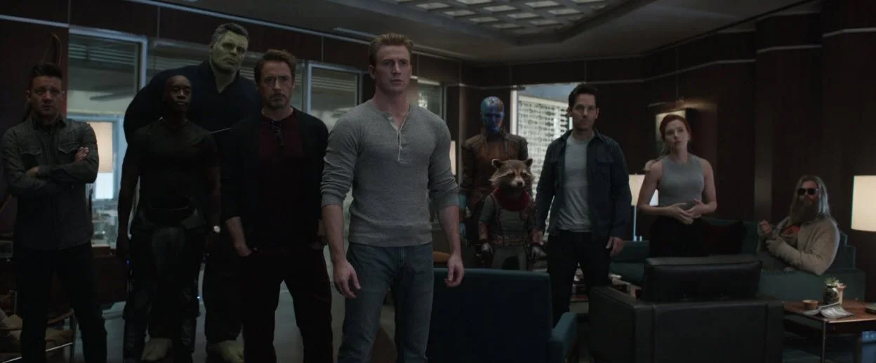 After the events of Infinity War, the remaining members of Earth’s mightiest heroes are reunited with Tony Stark (Robert Downey Jr.) when he’s brought back to Avengers headquarters with Nebula (Karen Gillan) by Captain Marvel (Brie Larson), who just happened to conveniently be in that same area as him in the seemingly endless void of emptiness we call “outer space”. They discuss what happened in a good dramatic scene and then decide to hunt down Thanos (Josh Brolin) so they can potentially retrieve the Infinity Stones and undo what he did. Unfortunately, by the time they find him, he’s already destroyed the stones to ensure that wouldn’t happen. In an act of vengeance and rage, Thor (Chris Hemsworth) kills Thanos and walks away.