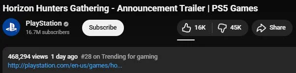 As I was putting all my thoughts together and working on this article, a trailer from Sony dropped for a new game in their Horizon series by Guerrilla Games studios. When I saw it for myself and the type of reception it was getting, I was compelled to include it with everything else because, well, it’s just too perfect not to include. If you look at the like/dislike ratio, you might understand why.