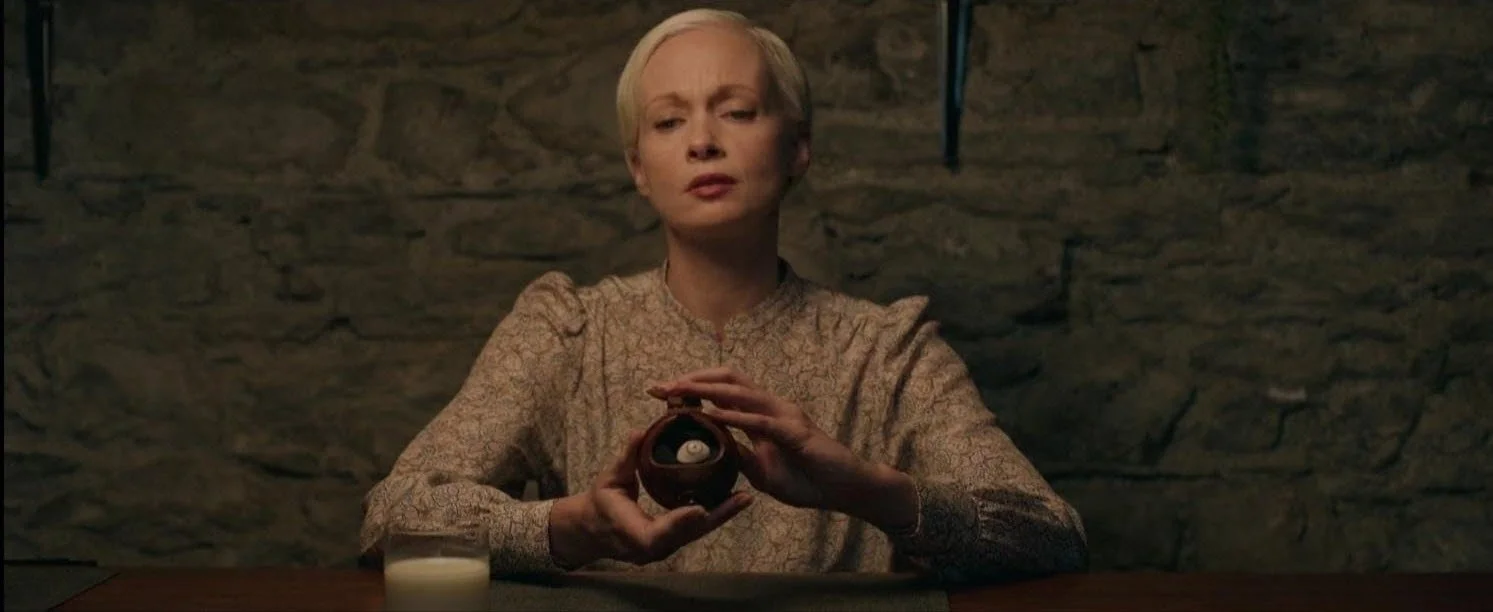 Dani Timmins (Carolyn Bracken) is renovating an old castle in a secluded part of Ireland. Her husband is working late at a mental hospital, so she’s by herself tonight. Suddenly, a man with a deranged look and a glass eye comes to her door, warning her that someone is inside the castle with her. She is not sure to trust him, for obvious reasons, but unfortunately for her, she does not survive the night. Some time passes, a man is killed by some mysterious creature, and Dani’s husband, Ted (Gwilym Lee), visits her blind twin sister Darcy (Carolyn Bracken) at her antique store. He brings her the glass eye of the man in the opening scene so that Darcy can inspect it and commune with the spirits to potentially see the night of her sister’s death. While there, he discloses that he’s been seeing someone else and that she should stop by some time to meet her over dinner. He didn’t mean within the next few days, but she takes him up on his offer because suspicion has been raised in her mind from this new development, and she’s determined to find out what actually happened to her sister.